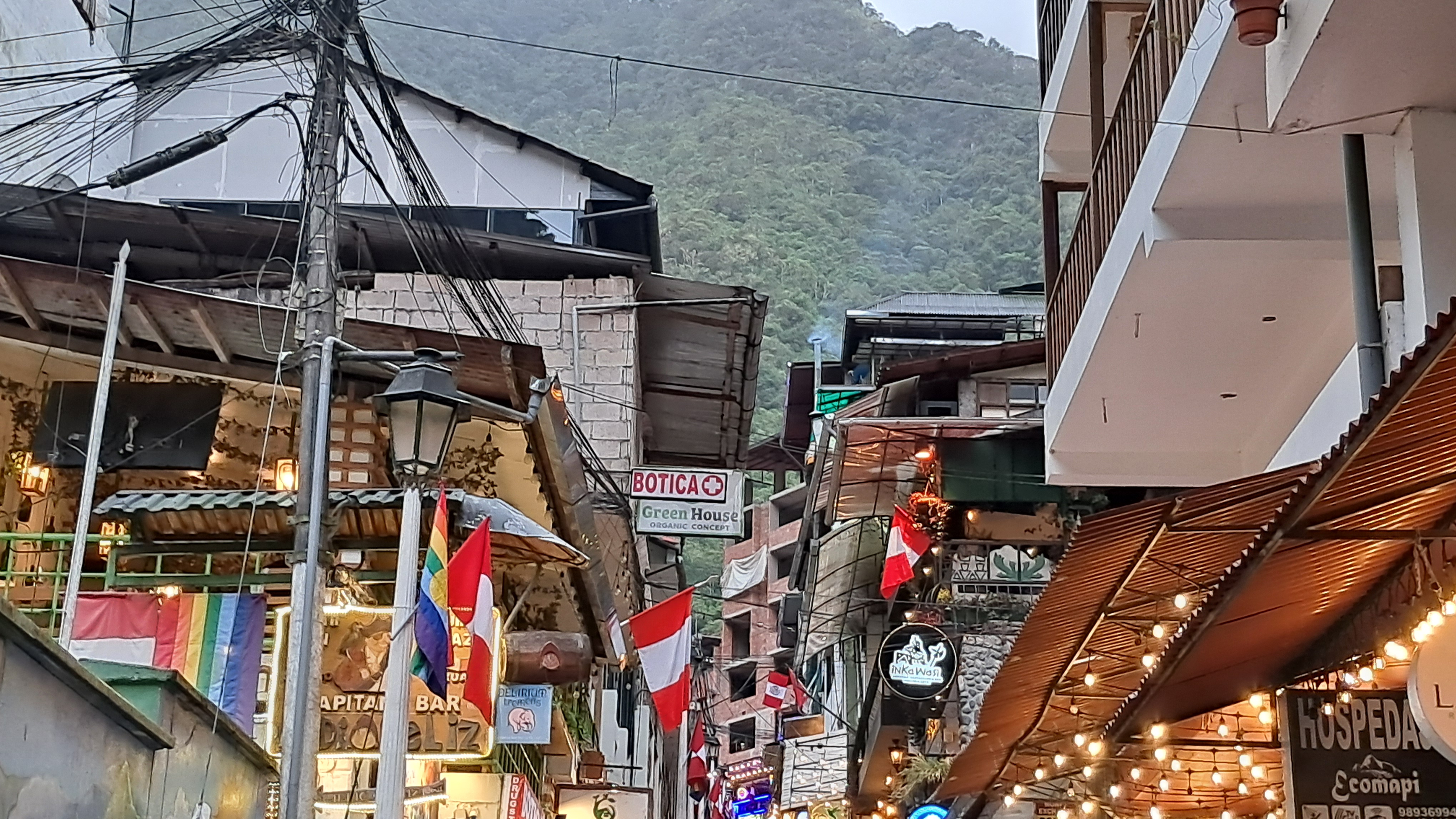 아구아스카리엔터역 근처에 있는 마추픽추 시내입니다.